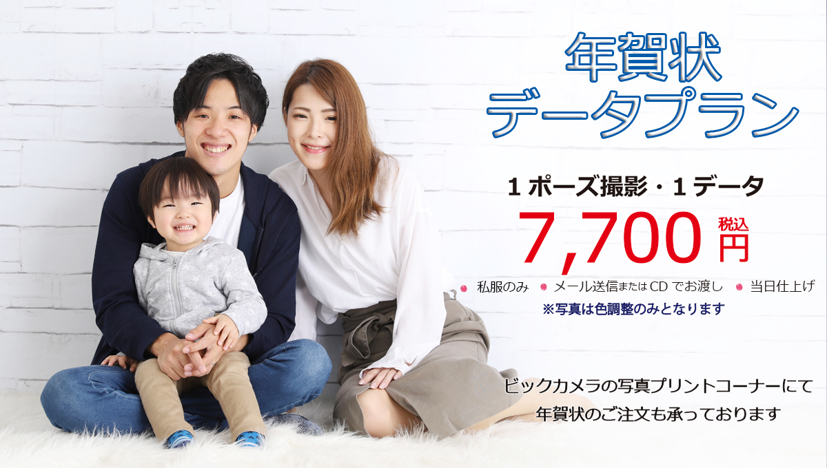 年賀状用に最適な、お手軽家族写真プランです。