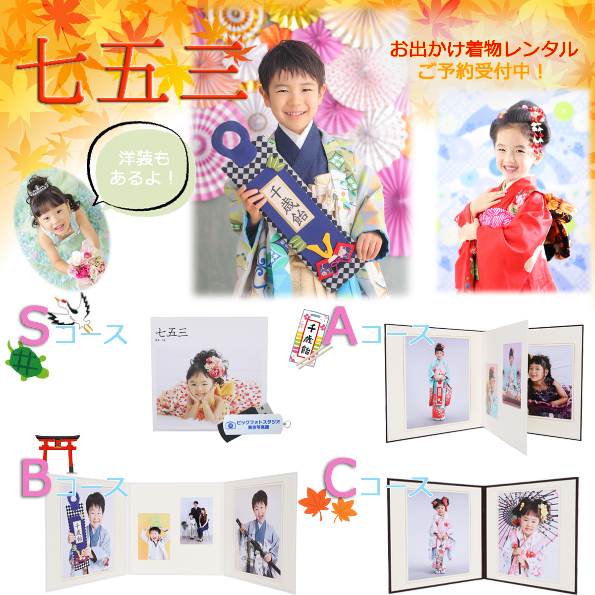 衣装レンタル、着付けもオプションとしてご利用いただけます。卒園卒業・入園入学