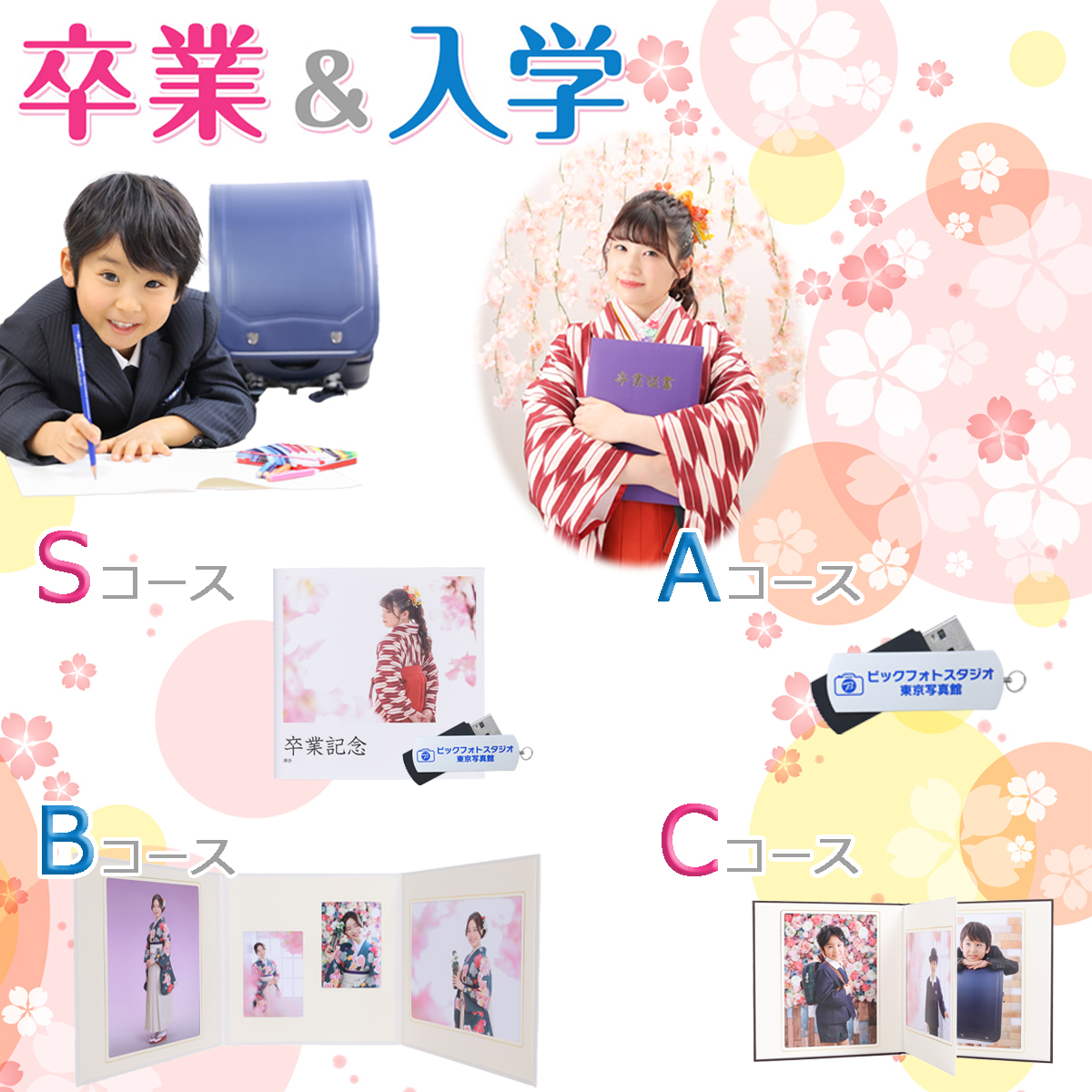 卒業証書、真新しい制服、ランドセル…思い出の品やこれからを共に過ごす新しい品と一緒に「今」を残しましょう。
